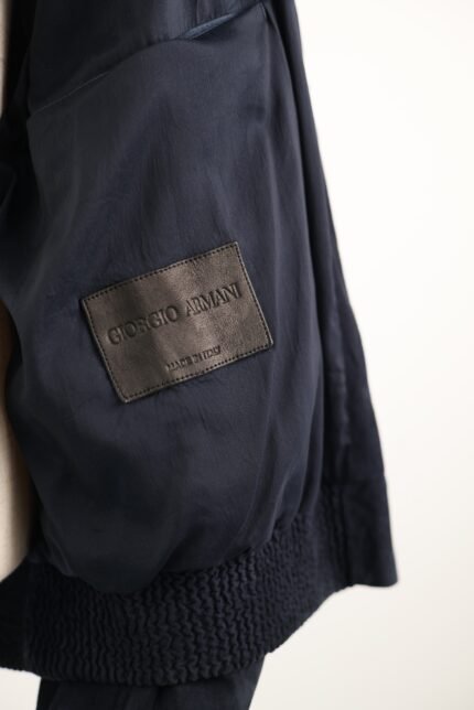 Giorgio Armani Bomber Jacket Navy Chevron Nappa Leather