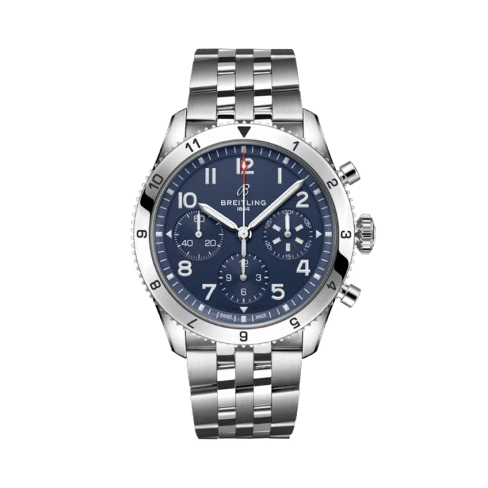 The Breitling Classic AVI Chronograph 42 Tribute to Vought F4U Corsair (model A233801A1C1A1) pays tribute to the legendary Vought F4U Corsair fighter aircraft, combining aviation heritage with contemporary design. The 42mm stainless steel case houses a bold black dial with white sub-dials, giving it a striking contrast. The chronograph function is powered by the reliable Breitling Caliber 13 movement, which offers a 48-hour power reserve and accurate timekeeping. The rotating bezel adds to the functional design, while the brown leather strap enhances its vintage look. This timepiece is ideal for those who appreciate aviation history and seek a combination of style and functionality in a watch.
