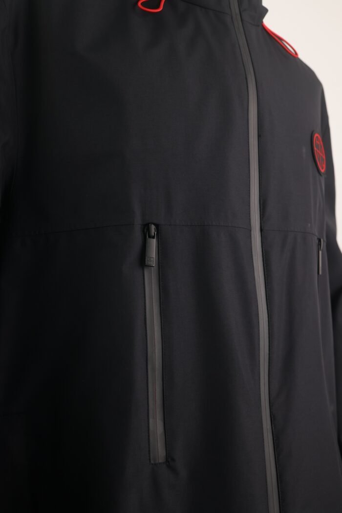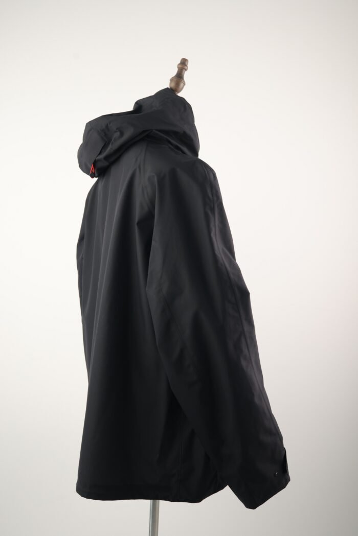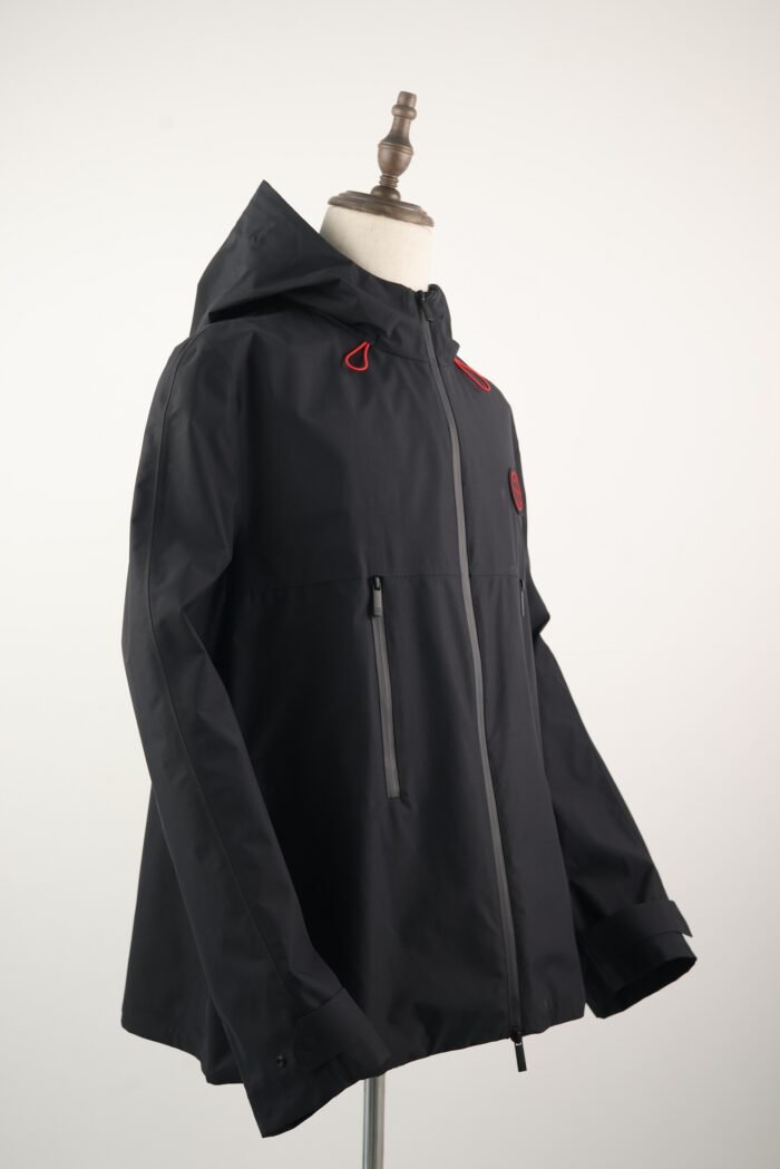 The design features a clean, tailored silhouette with a drawstring hood, zip-front closure, and adjustable hem, ensuring a personalized fit. Subtle branding and refined hardware elevate the look, making it just as suitable for city outings as it is for active weekends.
