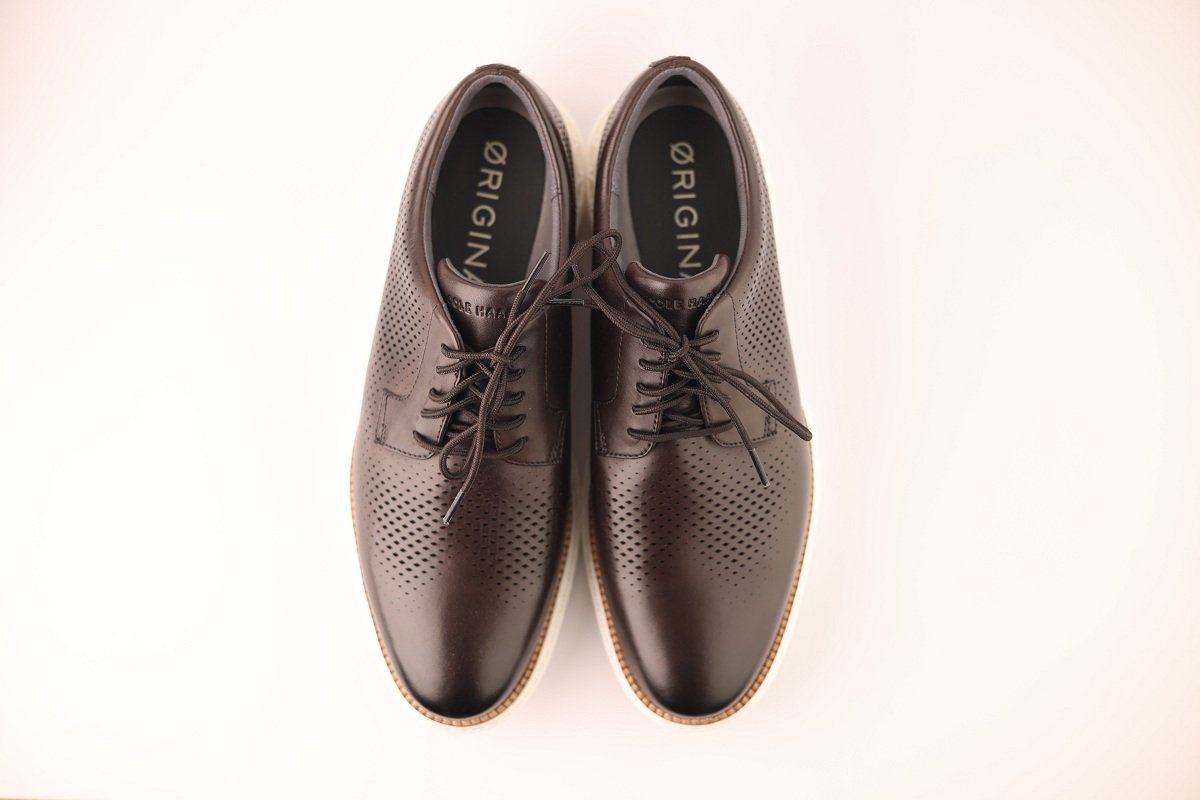 Crafted with a smooth leather upper, the shoe features brogue detailing that adds a refined, traditional touch. Beneath its formal exterior lies an ultra-lightweight EVA midsole paired with Cole Haan’s Grand.ØS technology—delivering superior cushioning, energy return, and flexibility with every step.