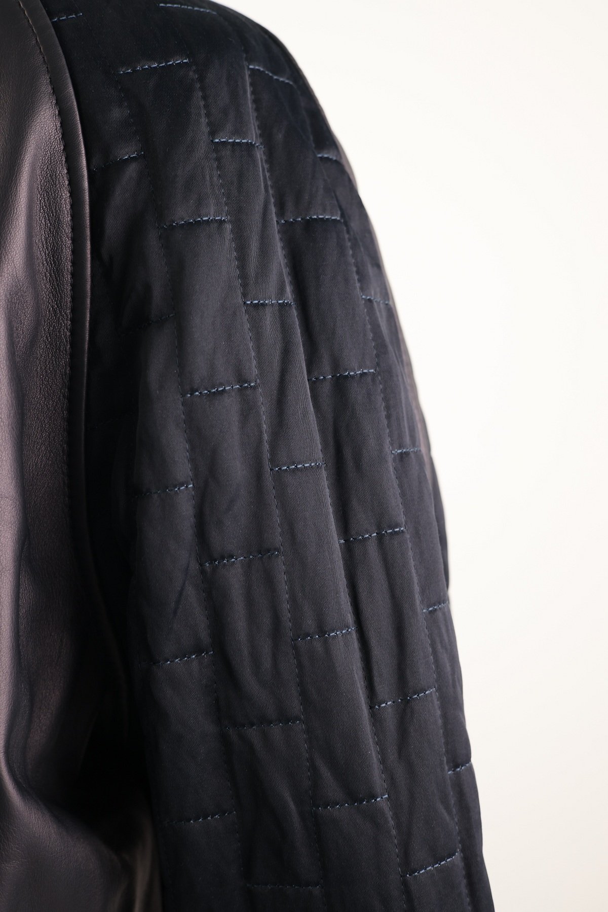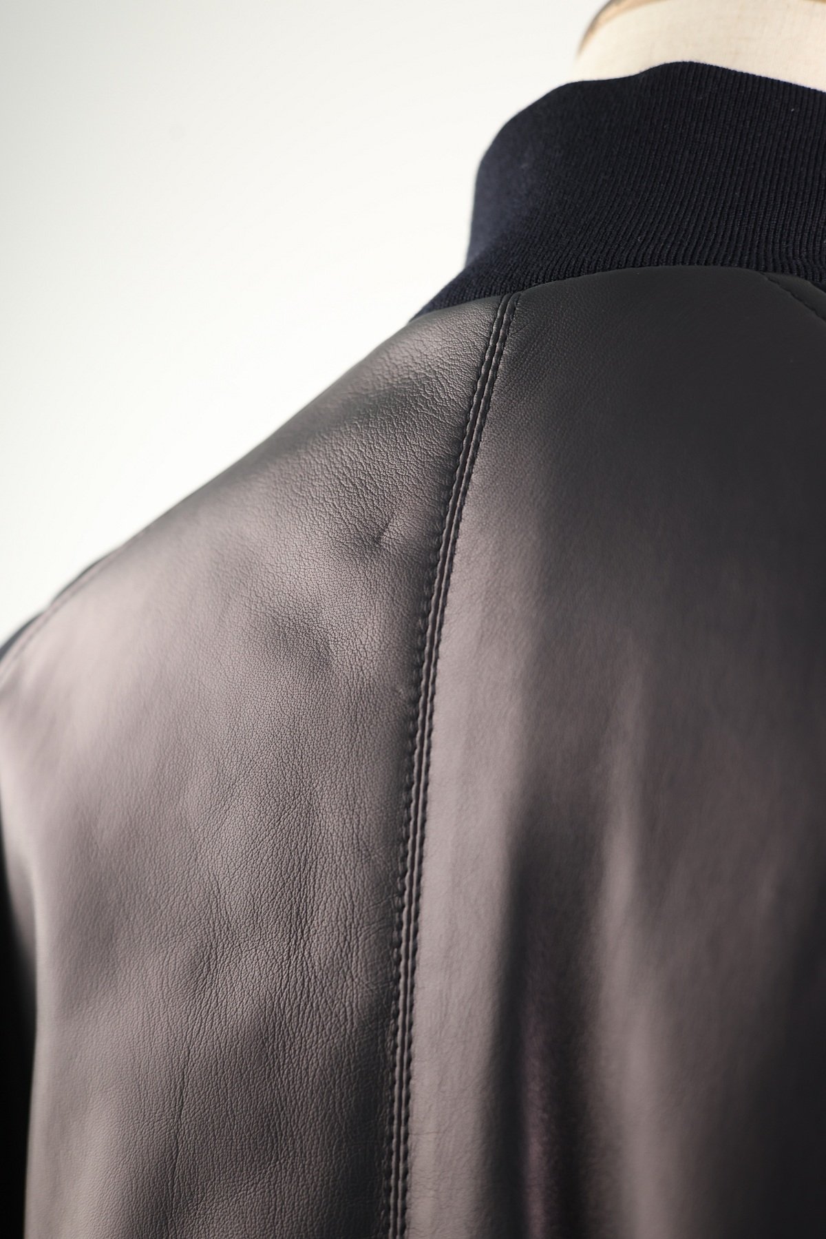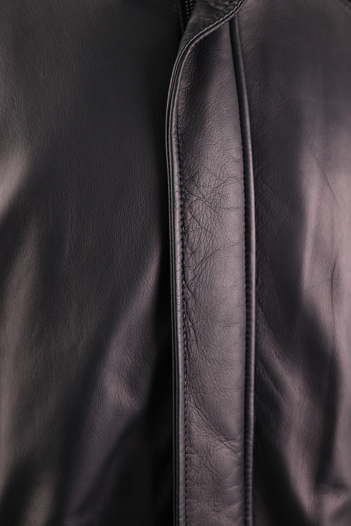 A luxurious bomber jacket crafted from supple lamb Nappa leather, showcasing Giorgio Armani’s signature blend of elegance, comfort, and modern edge.