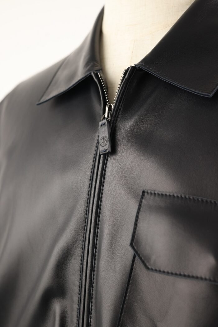 Timeless elegance meets contemporary edge in this Giorgio Armani leather zipped jacket — a wardrobe staple crafted for modern sophistication.