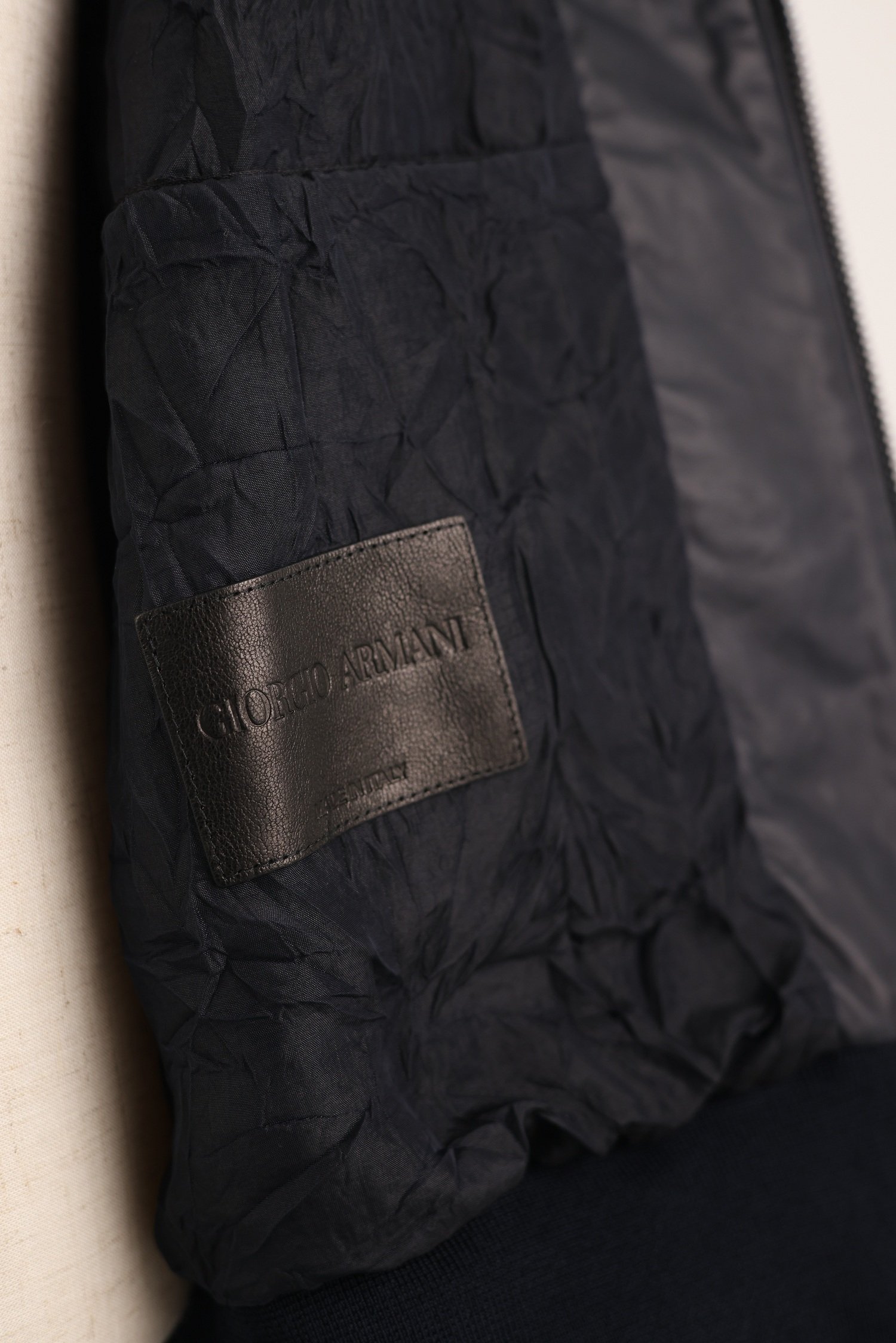 A tailored fit, ribbed knit cuffs and hem, and a sleek front zipper complete the silhouette, offering comfort and style in equal measure. The minimalist design is elevated by precise detailing and impeccable Italian craftsmanship — hallmarks of the Armani name.