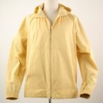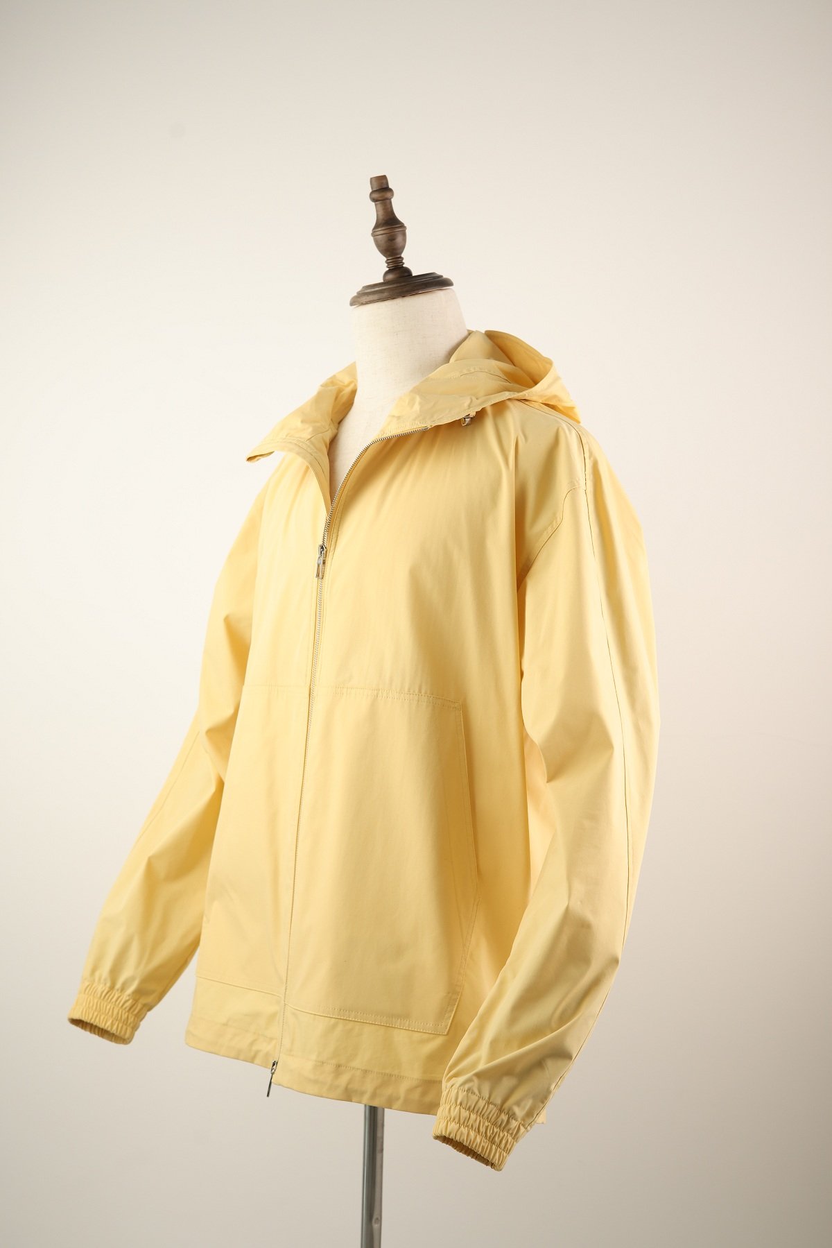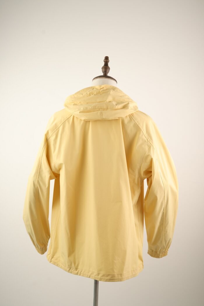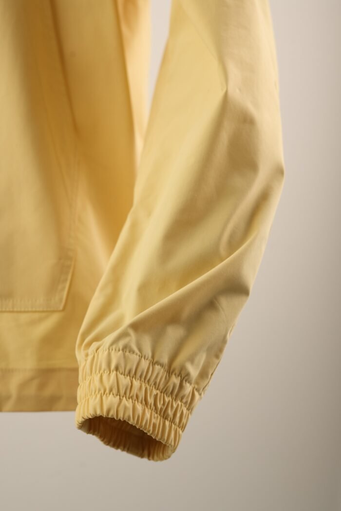 Cut in a modern, clean-lined silhouette, it features a high collar, zip front, and adjustable cuffs, offering comfort and ease of movement. The bright yellow hue adds a contemporary, energetic touch to a technical staple, perfect for both city wear and outdoor escapes.