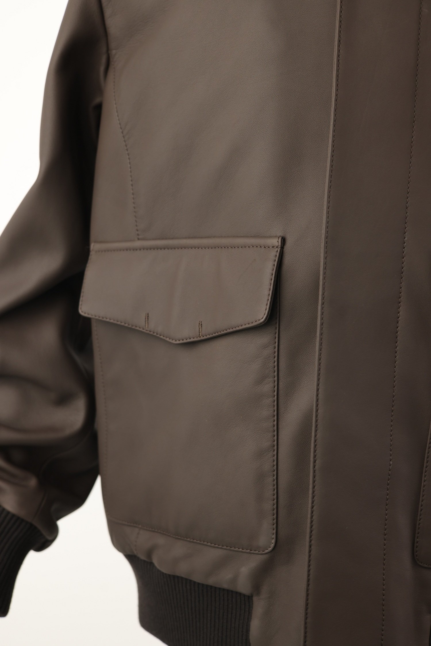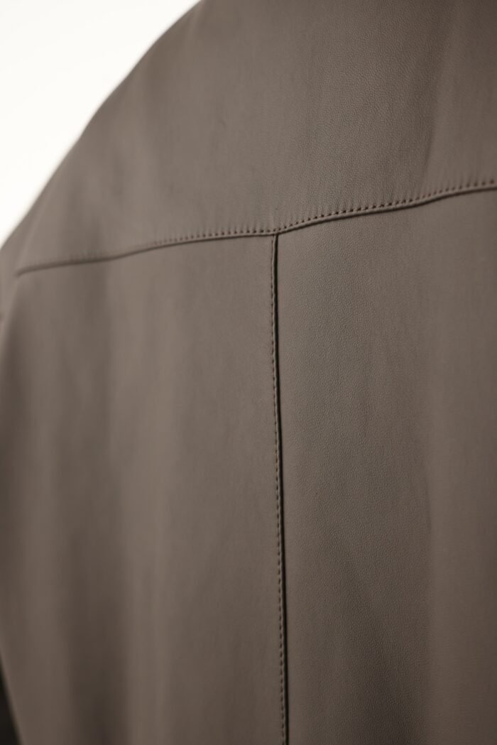 A timeless bomber jacket crafted from supple Patton leather, showcasing Loro Piana’s mastery of refined outerwear in a rich brown hue.
