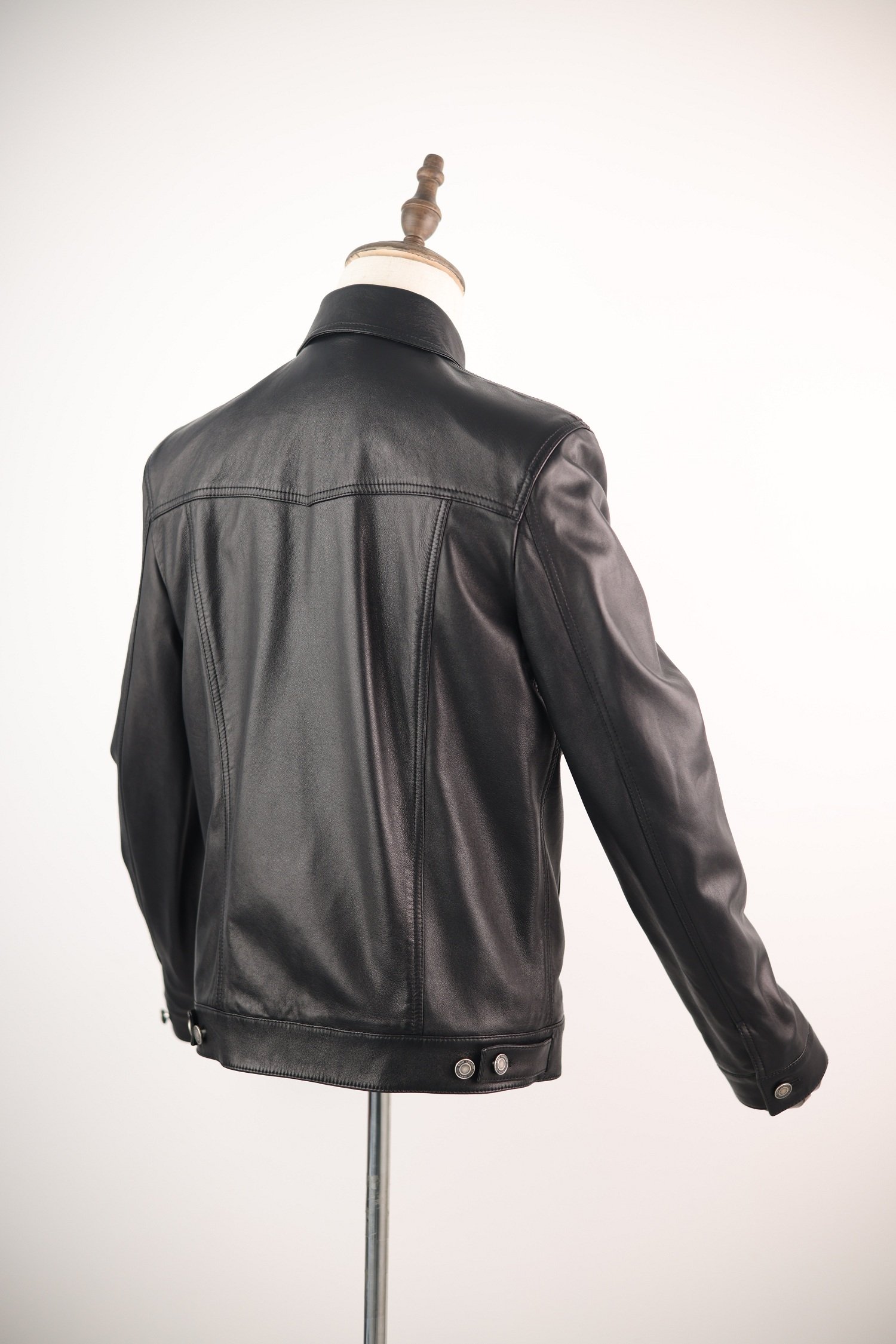 Fashion-forward individuals seeking a minimalist, luxurious leather jacket with a timeless silhouette. Perfect for urban, smart-casual styling or layering over shirts and turtlenecks.