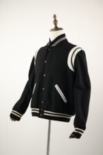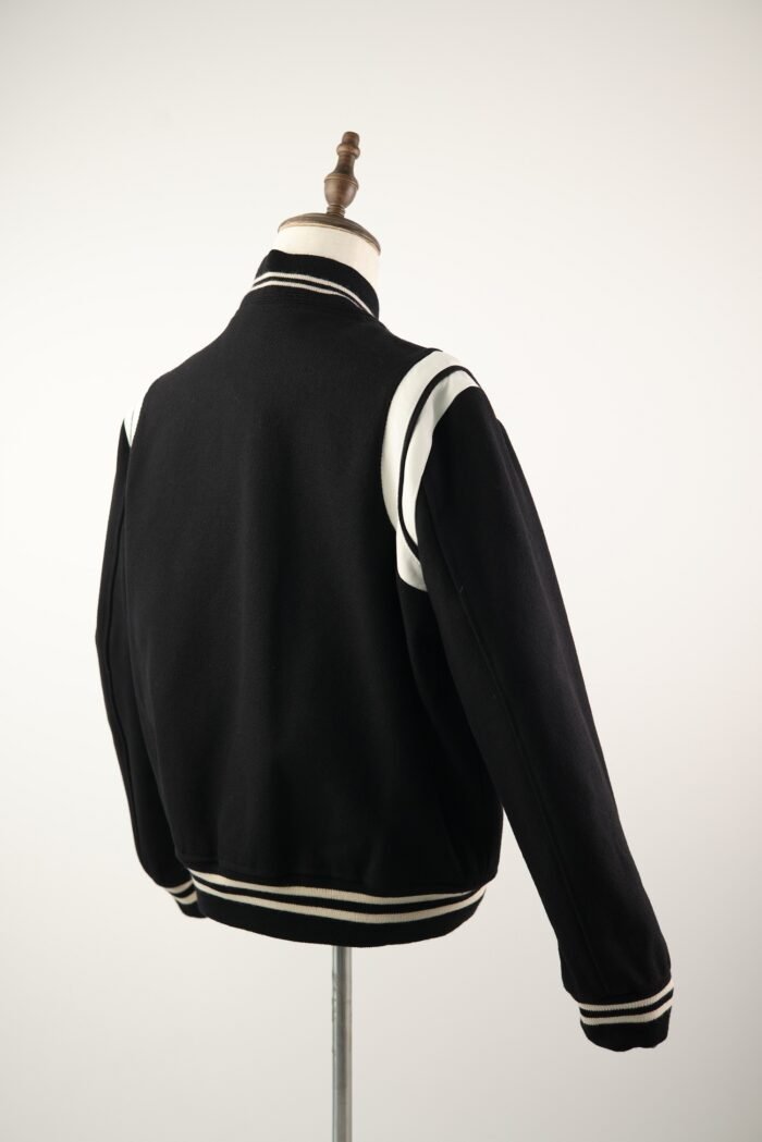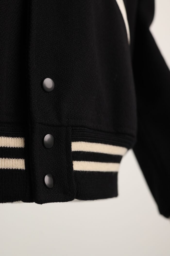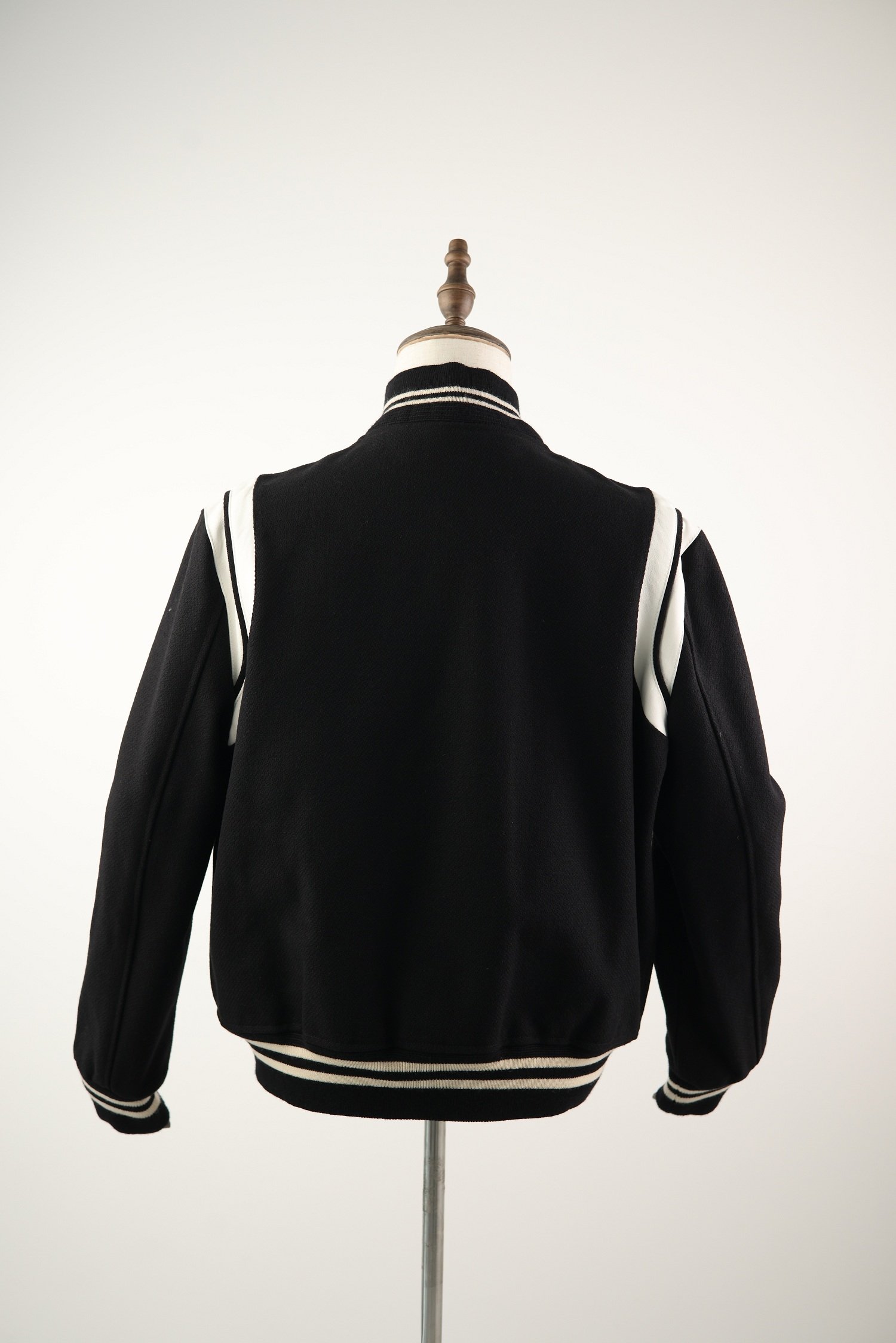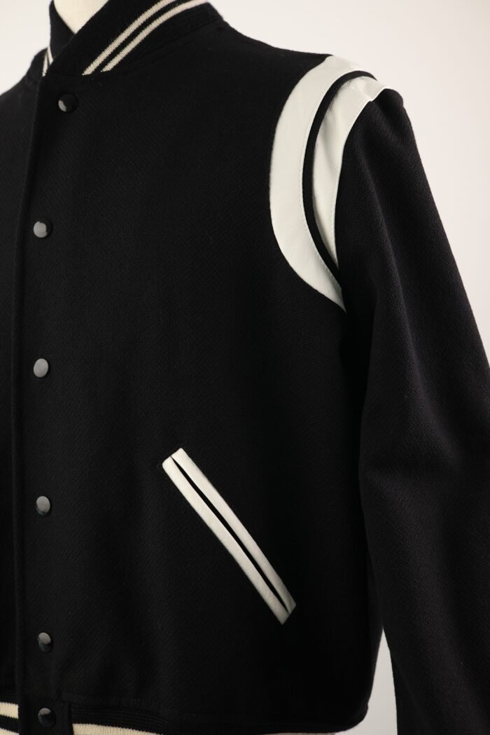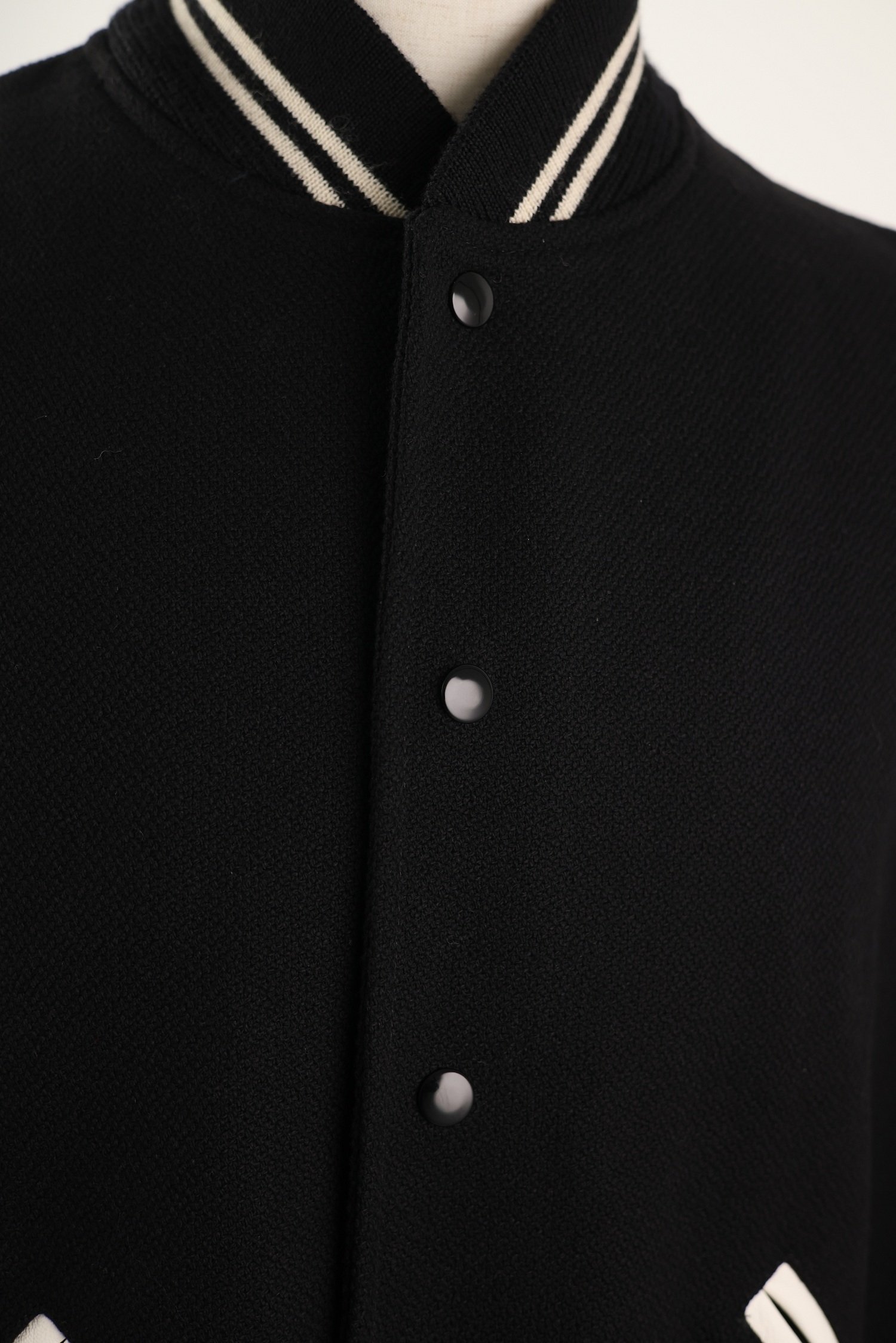 A bold rework of the classic varsity silhouette — the Saint Laurent Teddy 2Bandes Jacket combines luxury tailoring with effortless attitude.