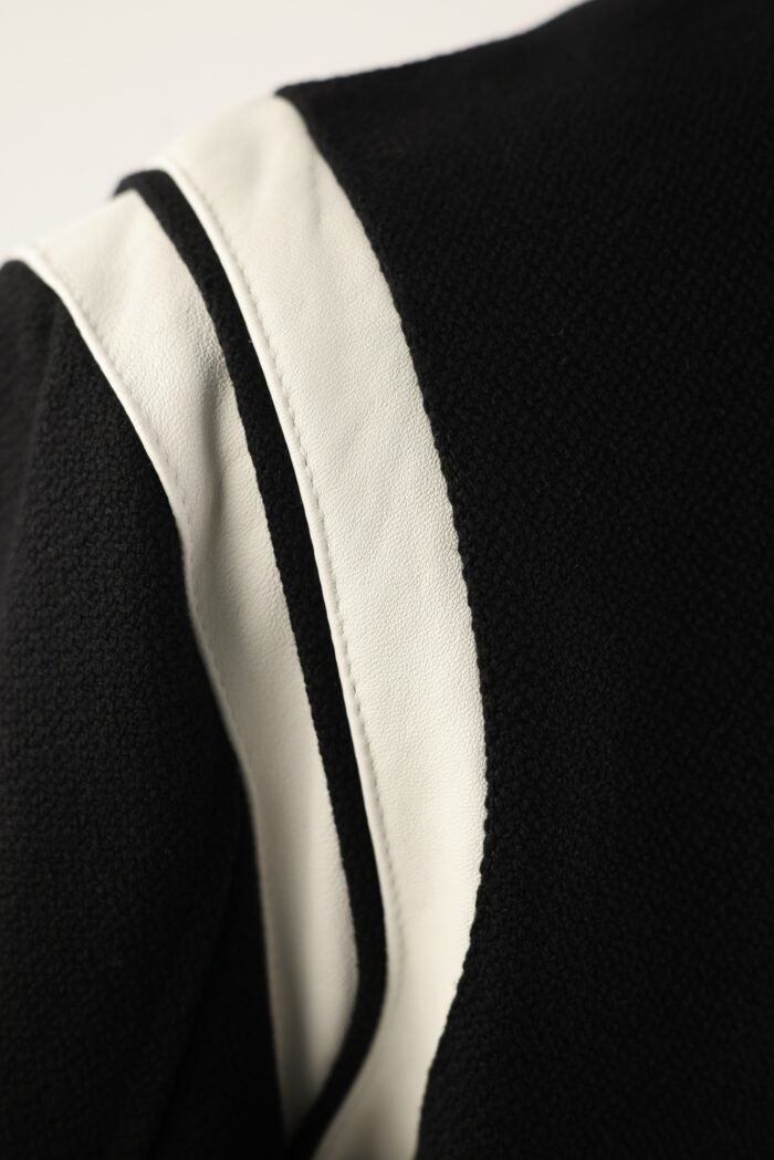 The Saint Laurent Teddy 2Bandes Jacket delivers a striking fusion of sporty Americana and Parisian edge. Crafted in Italy, this jacket features a premium wool-blend body paired with smooth leather sleeves, maintaining the iconic varsity design while elevating it with signature Saint Laurent finesse.