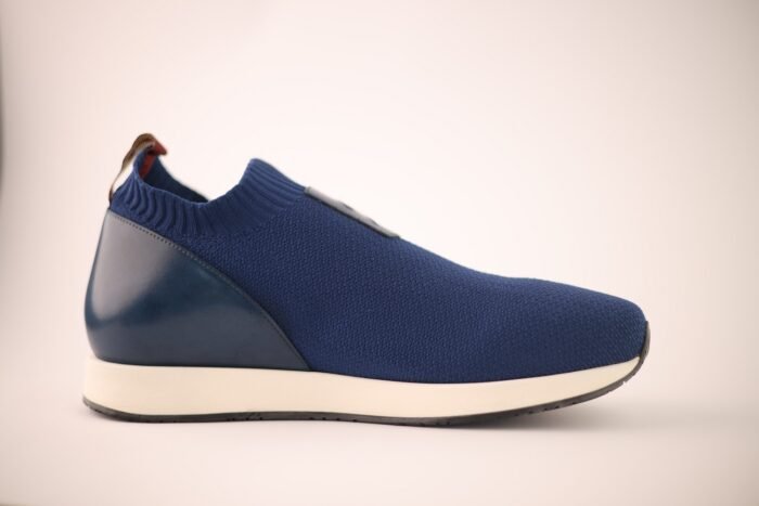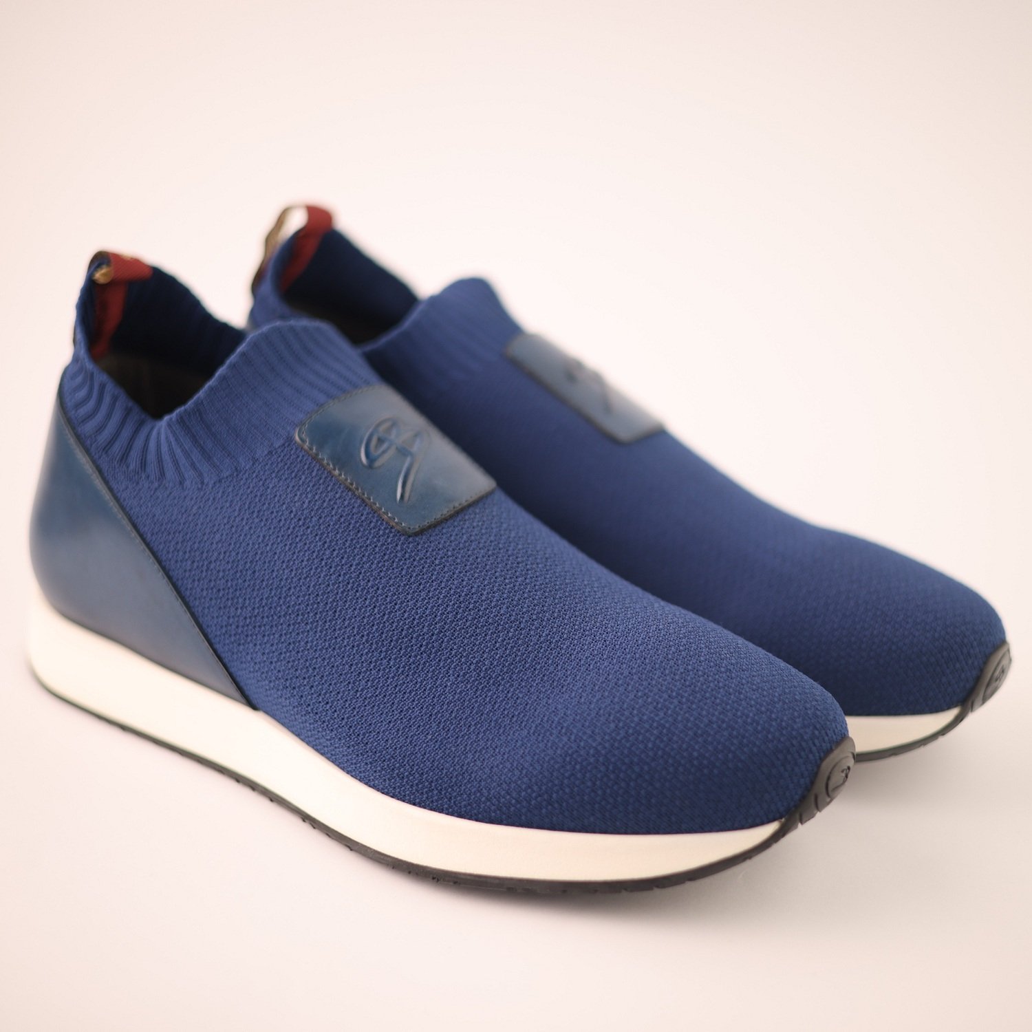 The SB221 is an upscale Italian sneaker combining knit fabric and first-choice calfskin leather in a slip-on silhouette, anchored by a handmade EVA‑Rubber outsole—lightweight, flexible, and supremely comfortable.