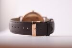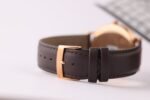 Case: 40mm diameter, ultra-slim 7.1mm thickness, crafted from rose-gold PVD-coated stainless steel