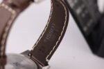 Strap: Brown embossed cow leather strap with white contrast stitching and quick-release spring bars