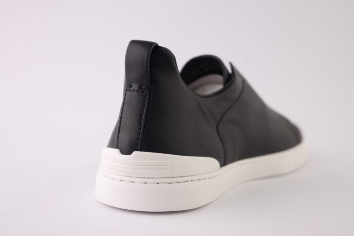 Luxurious black leather sneakers crafted with SECONDSKIN technology and Zegna’s iconic Triple Stitch™ design.
