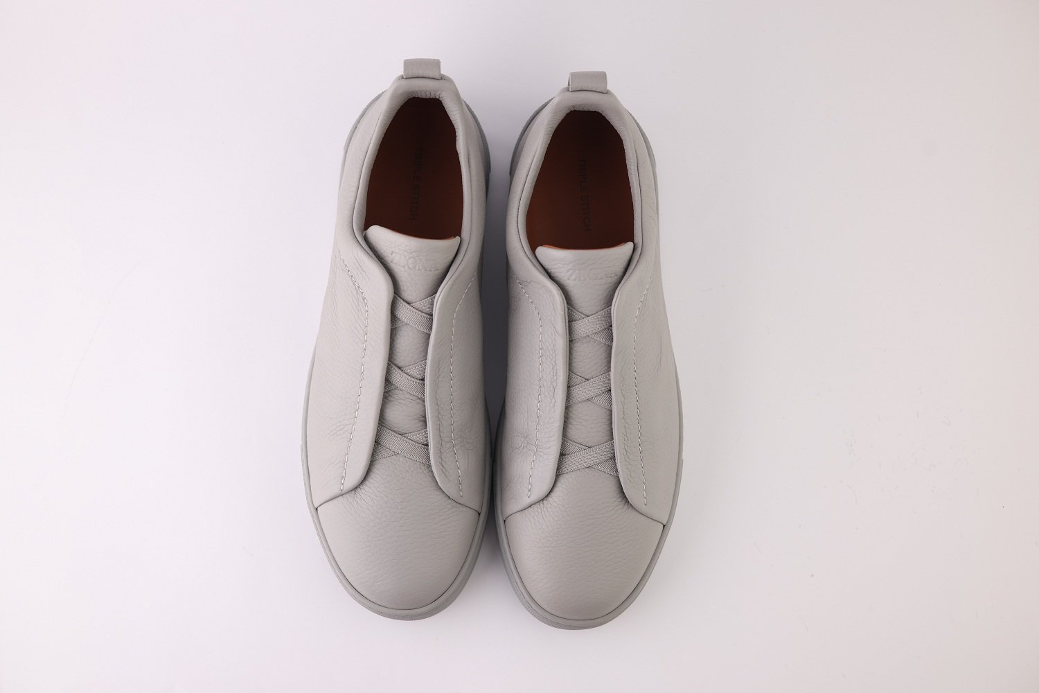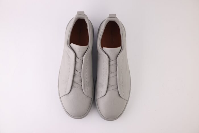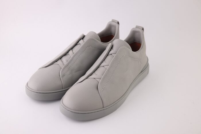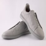 Elegant sneakers in grey mélange deerskin with Zegna’s signature Triple Stitch™ detail, offering unmatched softness and refined style.