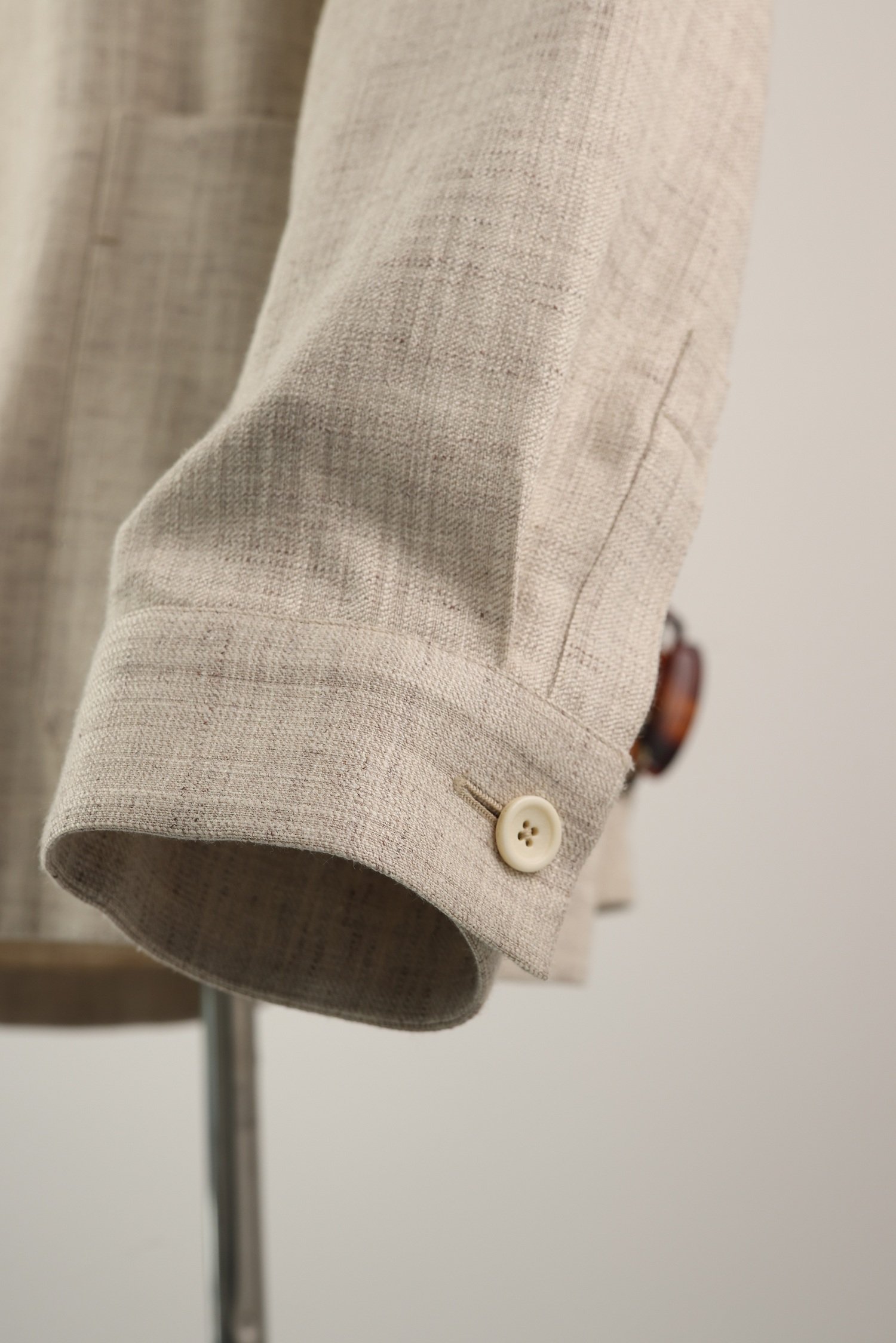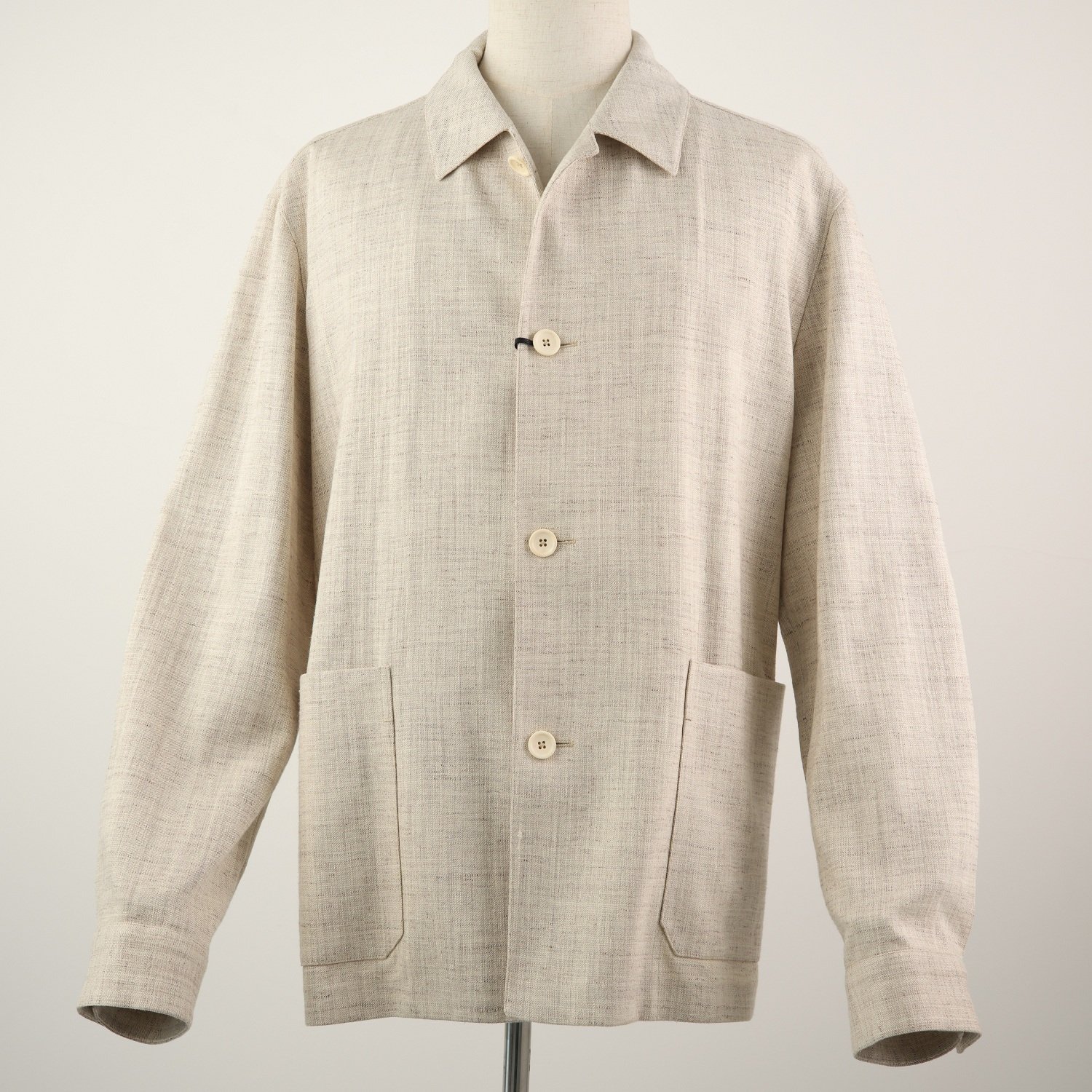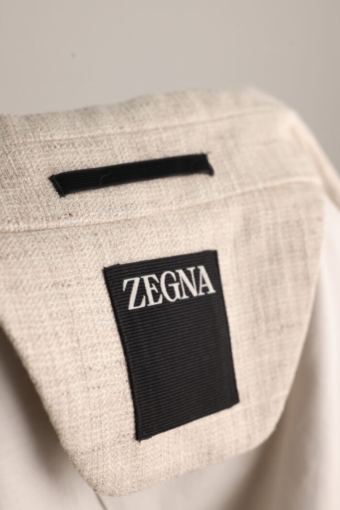 Zegna Off White Silk and Linen Blend Chore Jacket