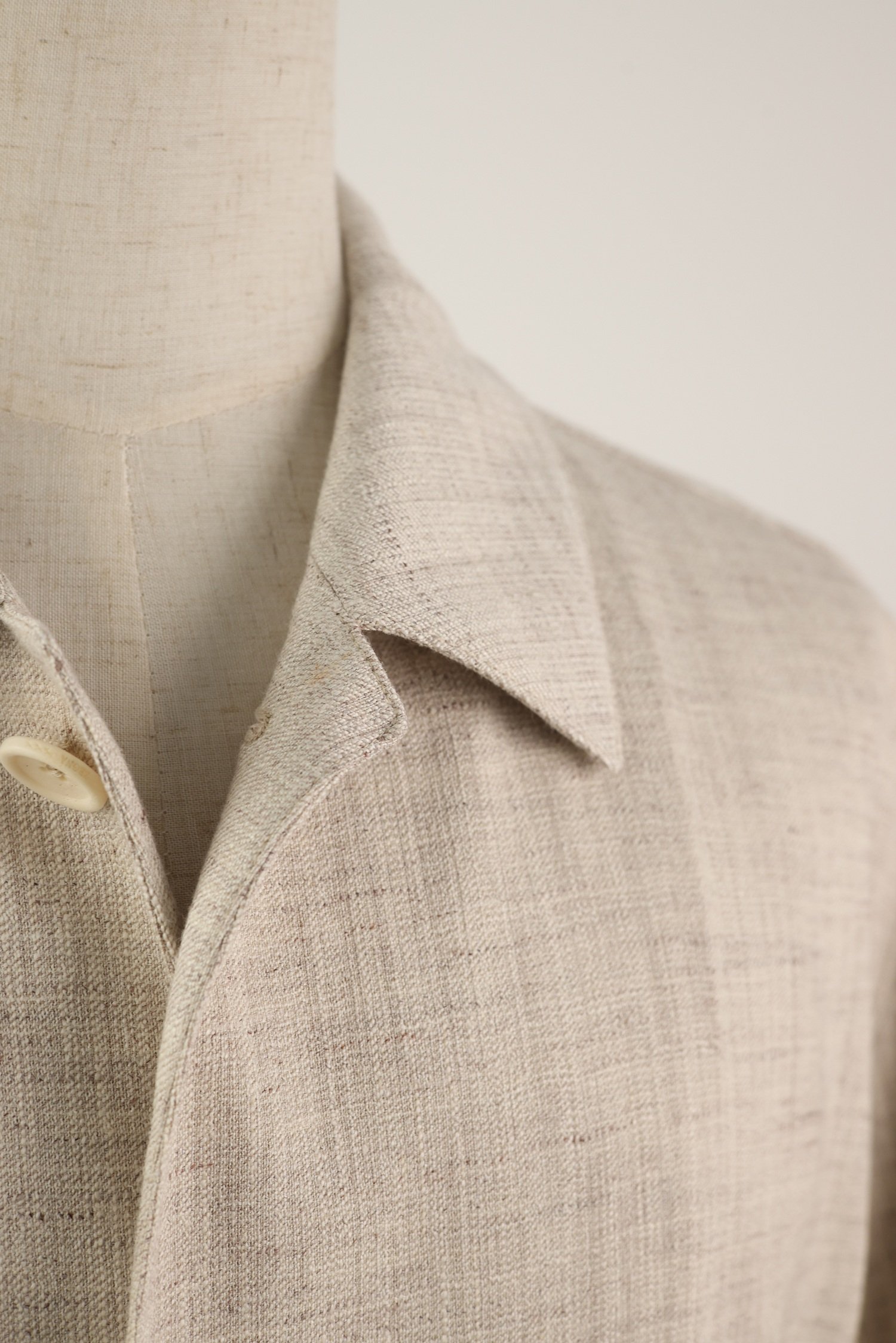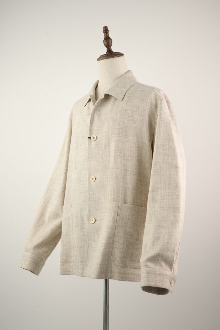 An elegant chore jacket in an off-white silk-linen blend, offering lightweight structure, natural texture, and Zegna’s signature refined tailoring.