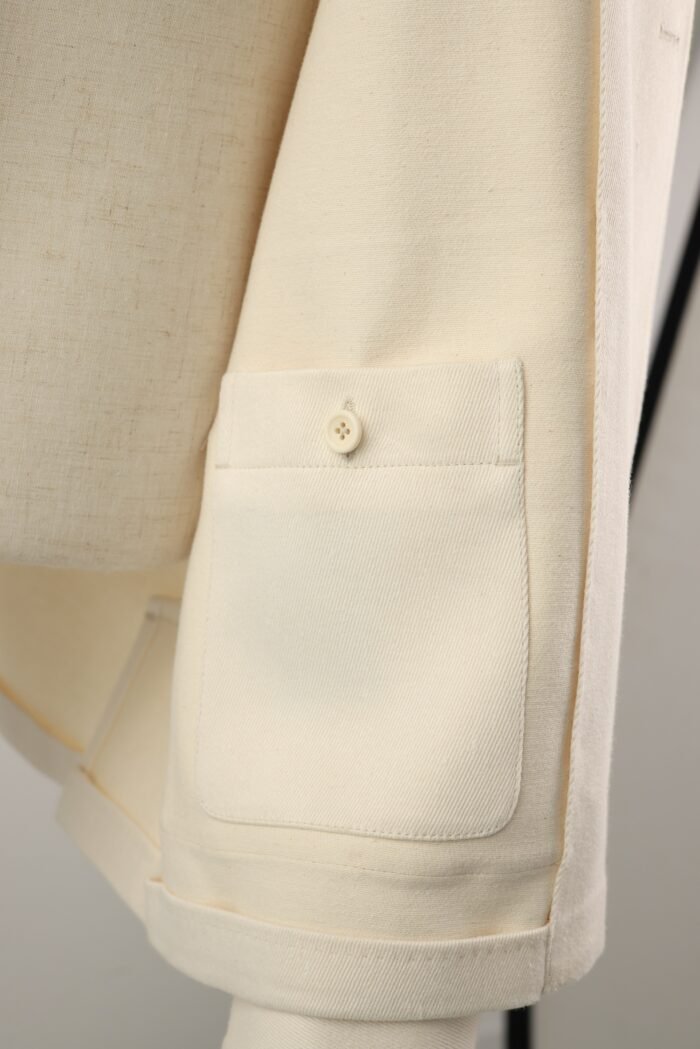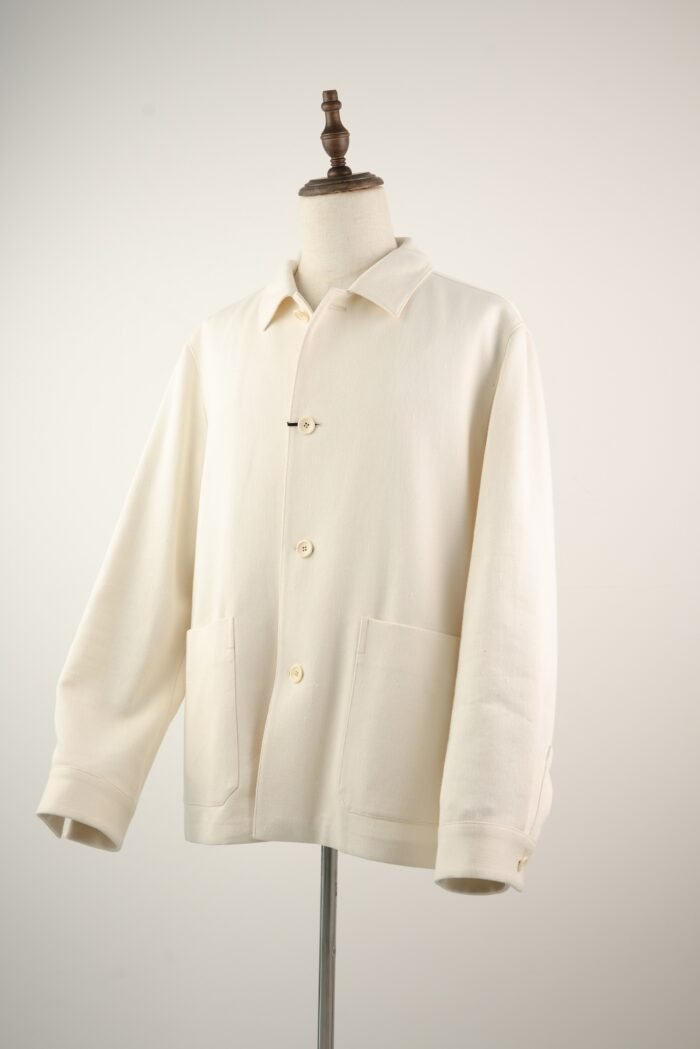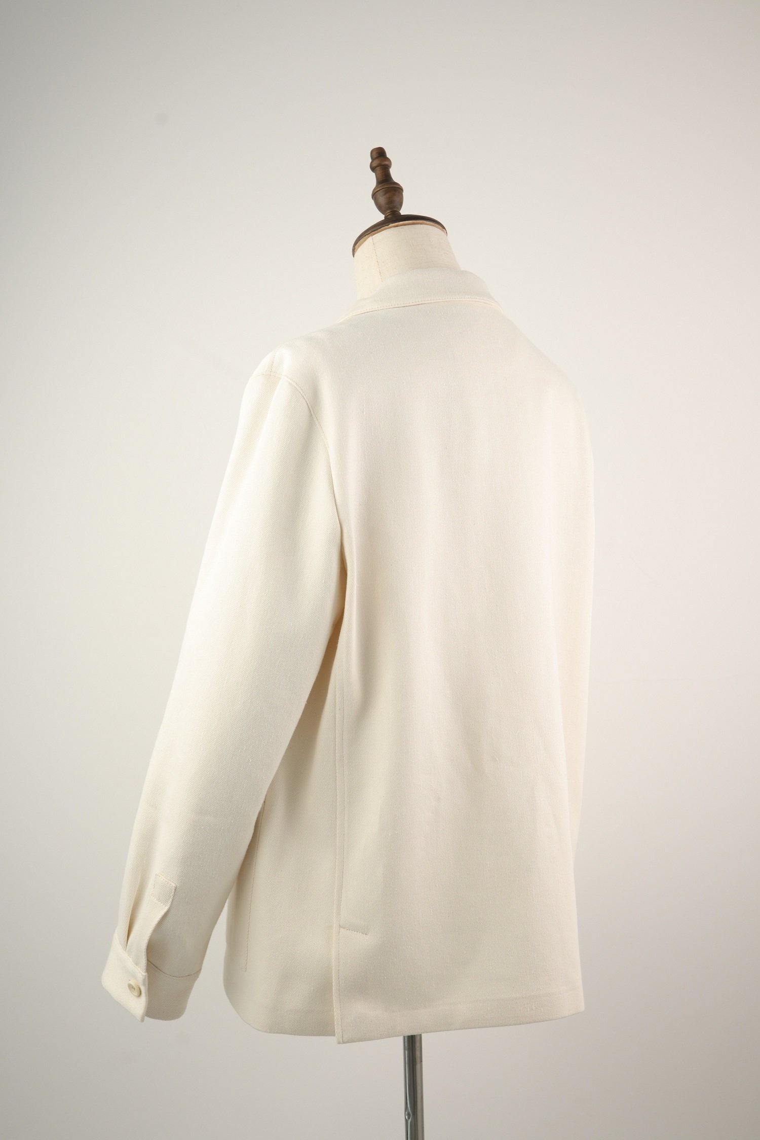 Its bright white tone enhances the clean lines and understated design, while classic chore elements—like the button front and multiple patch pockets—are refined with Zegna’s signature attention to detail. The lightweight construction makes it ideal for effortless styling over t-shirts, polos, or fine knits.