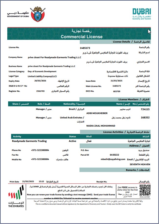 Prive is an officially licensed business registered in Dubai.